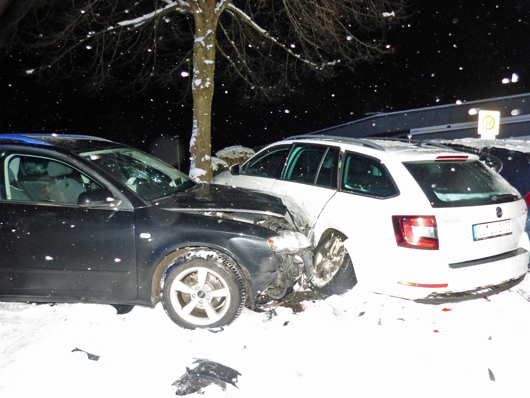 Zeugen hatten gegen 23.25 Uhr einen lauten Knall gehört. Ein Audi war ausgangs einer Rechtskurve nach links von der Fahrbahn abgekommen und auf einer angrenzenden Parkfläche in die Seite eines geparkten Skoda gefahren. Der Skoda wurde dadurch gegen einen daneben geparkten BMW geschoben, der seinerseits gegen einen weiteren Audi rutschte. Als die Zeugen kurz darauf zur Unfallstelle eilten, trafen sie dort auf den stark alkoholisierten Fahrzeughalter des unfallverursachenden Audi. Bei einem Alkoholvortest kam bei dem 24-Jährigen ein Wert von fast 2,3 Promille zustande, weshalb die Polizei eine Blutprobenentnahme veranlasste und den Führerschein des jungen Mannes einbehielt.