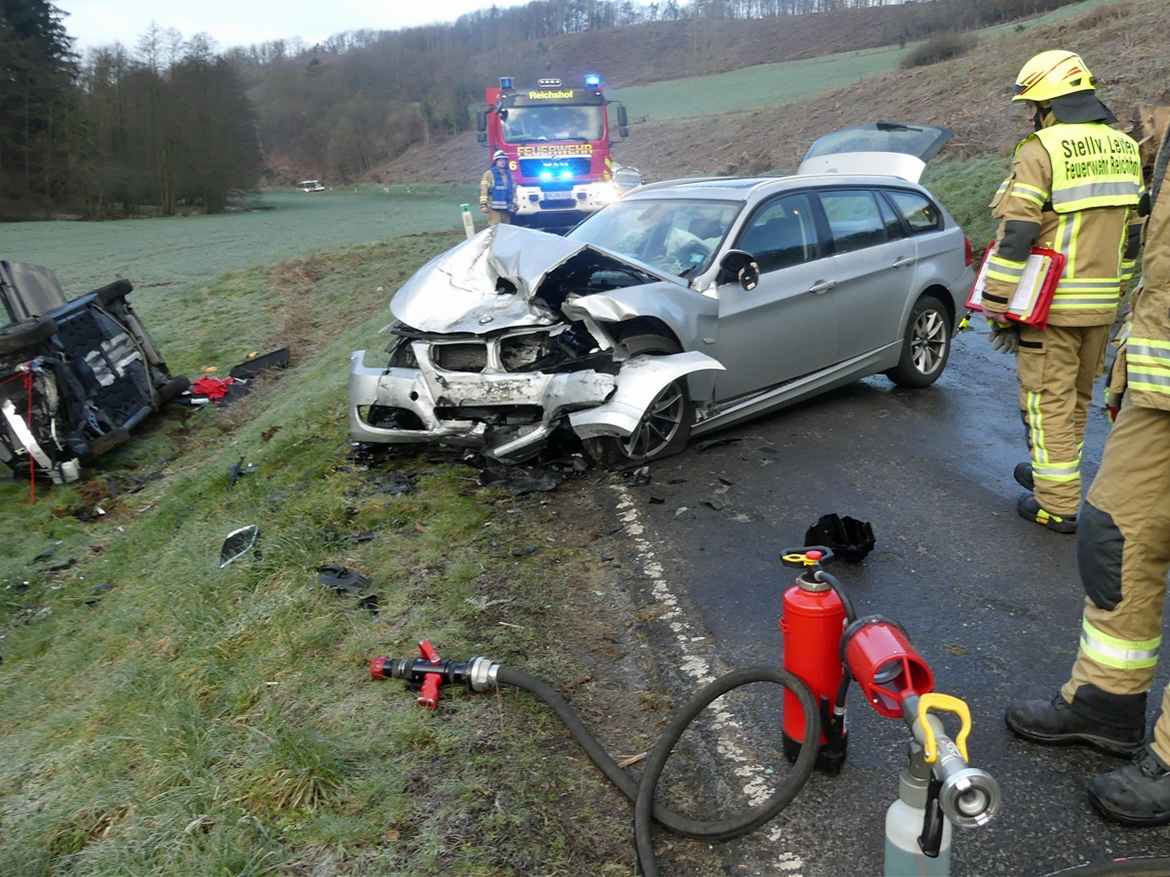 Nach bisherigen Erkenntnissen geriet der 20-jährige Gummersbacher auf eisglatter Fahrbahn ins Rutschen. Er geriet auf die entgegenkommende Fahrspur, wobei es zum Frontalzusammenstoß mit dem Auto des 60-jährigen Reichshofer kam.