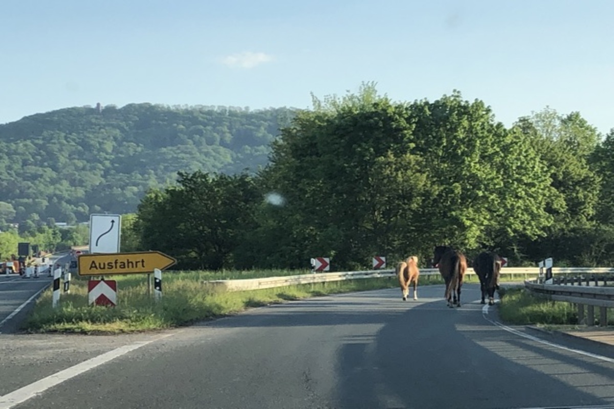 Am Morgen des 13.05.2023, gegen 7:00 Uhr, gelang es drei Pferden, einen unbegleiteten Ausflug von Engern aus in Richtung der Rintelner Nordstadt zu unternehmen. Die Tiere verirrten sich sogar vorübergehend auf die Fahrbahn der B238 im Bereich der Anschlussstelle Rinteln-Nord.