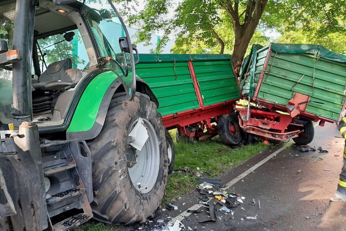 Auch der Fahrer des Traktorgespanns wurde verletzt (Bildquelle: Kreisfeuerwehr Rotenburg (Wümme))