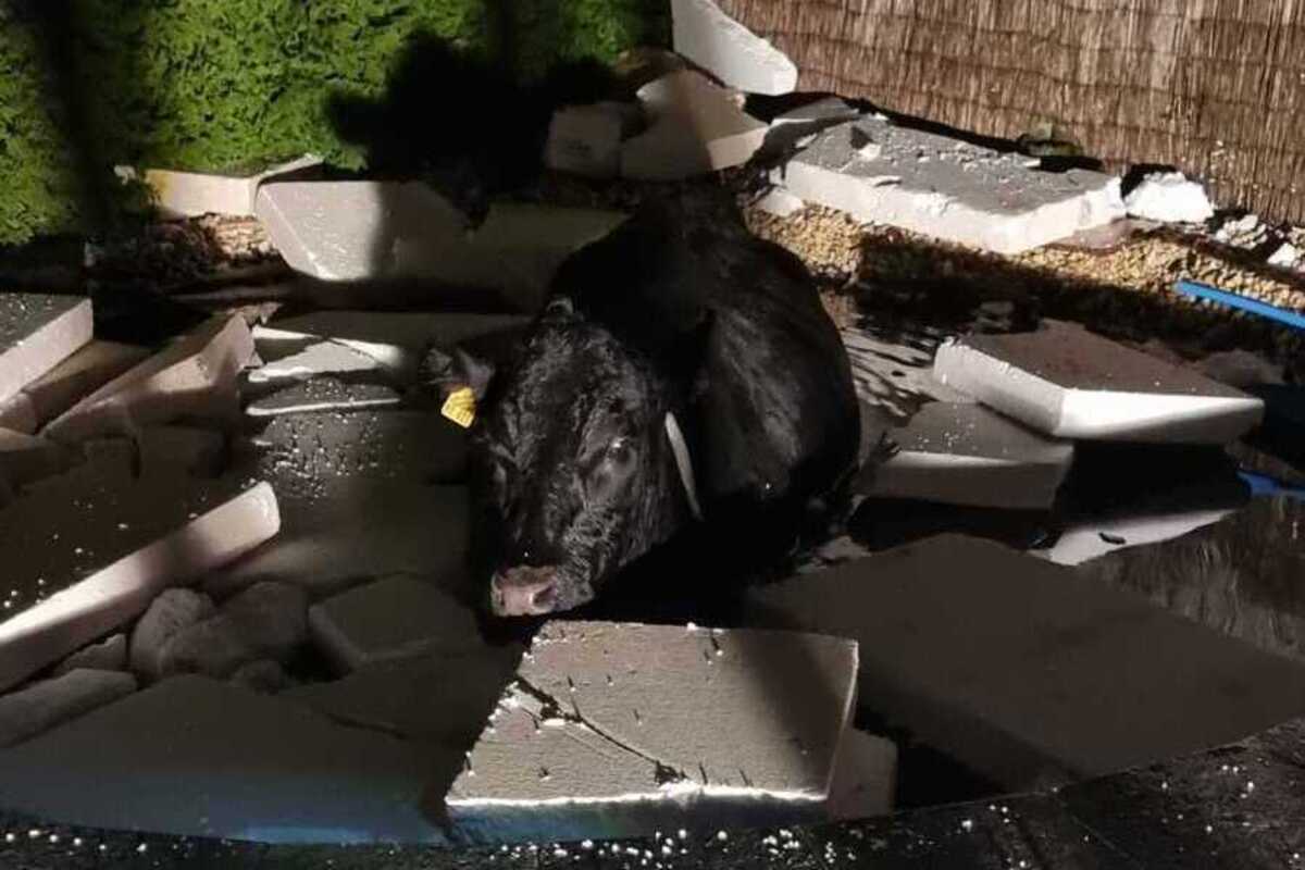 Dort angekommen planschte wirklich eine Kuh im Pool im Garten eines Einfamilienhauses. Die Kuh war nun bereits das dritte Mal von ihrer Herde geflüchtet und hatte die Gemeinde Greuda erkundet. Dieses Mal jedoch ging sie auf das Grundstück einer Familie und betrat den mit Styropor bedeckten Pool, in welchem sie anschließend hineinfiel. Aufgrund ihrer ruhigen Art machte es den Anschein, als würde es ihr im Wasser gefallen.