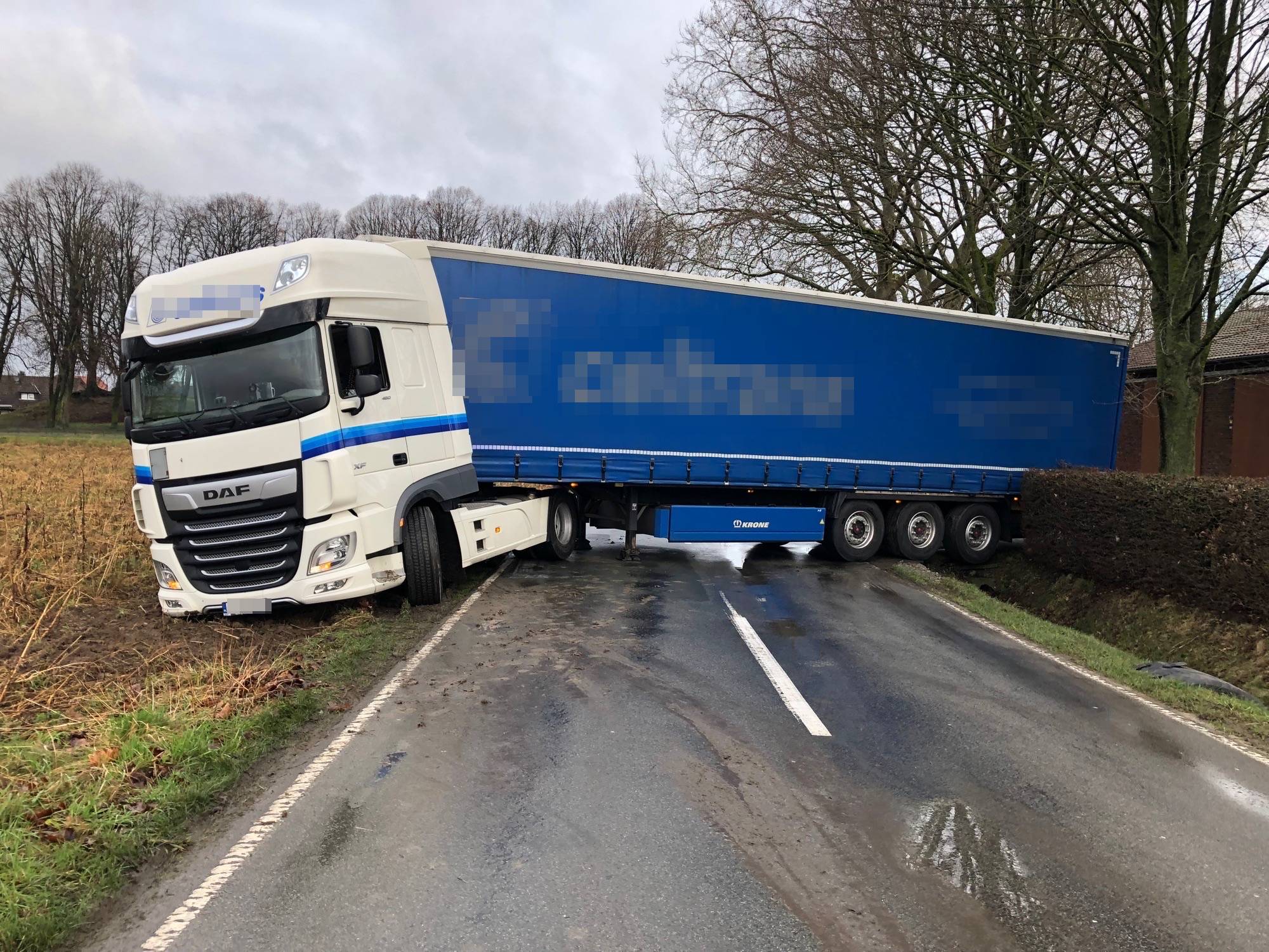 Sattelzug blockiert Straße (Bildquelle: Polizei Paderborn)