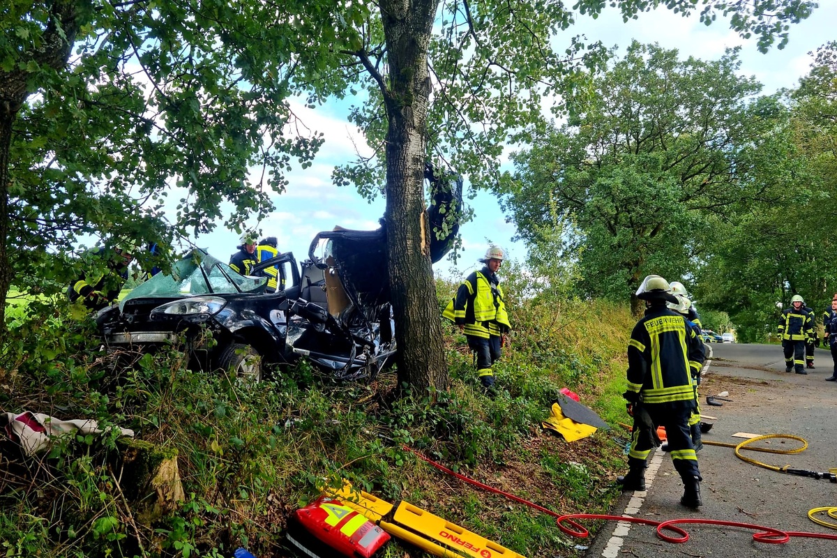 Die Feuerwehr zog das Auto mit der Seilwinde des Rüstwagens daher vom Baum weg auf die Reifen. Der junge Mann wurde im Anschluss aus seinem Auto getragen. Leider kam für ihn jede Hilfe zu spät.