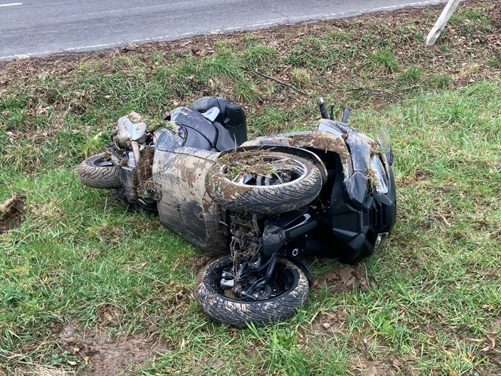 Ein Rollerfahrer aus Lüdenscheid hat auf der L 302 bei Engelskirchen-Kaltenbach die Kontrolle verloren, kam von der Straße ab und stürzte in einen Graben. Er wurde schwer verletzt ins Krankenhaus gebracht.