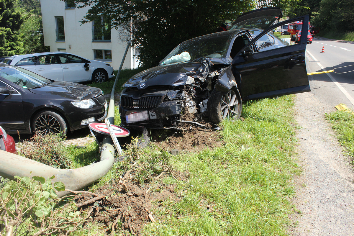 Durch den Aufprall wurde die Straßenlaterne vollständig aus der Verankerung gerissen und fiel auf insgesamt drei neben der Fahrbahn geparkte Pkw. Der Skoda drehte sich durch den Zusammenstoß und kam im angrenzenden Grünstreifen zum Stillstand.