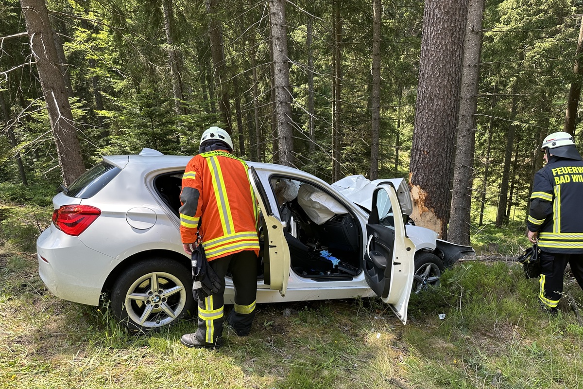 Nach ersten Erkenntnissen kam ein Verkehrsteilnehmer aus ungeklärter Ursache von der Fahrbahn ab und kollidierte frontal mit einem Baum.