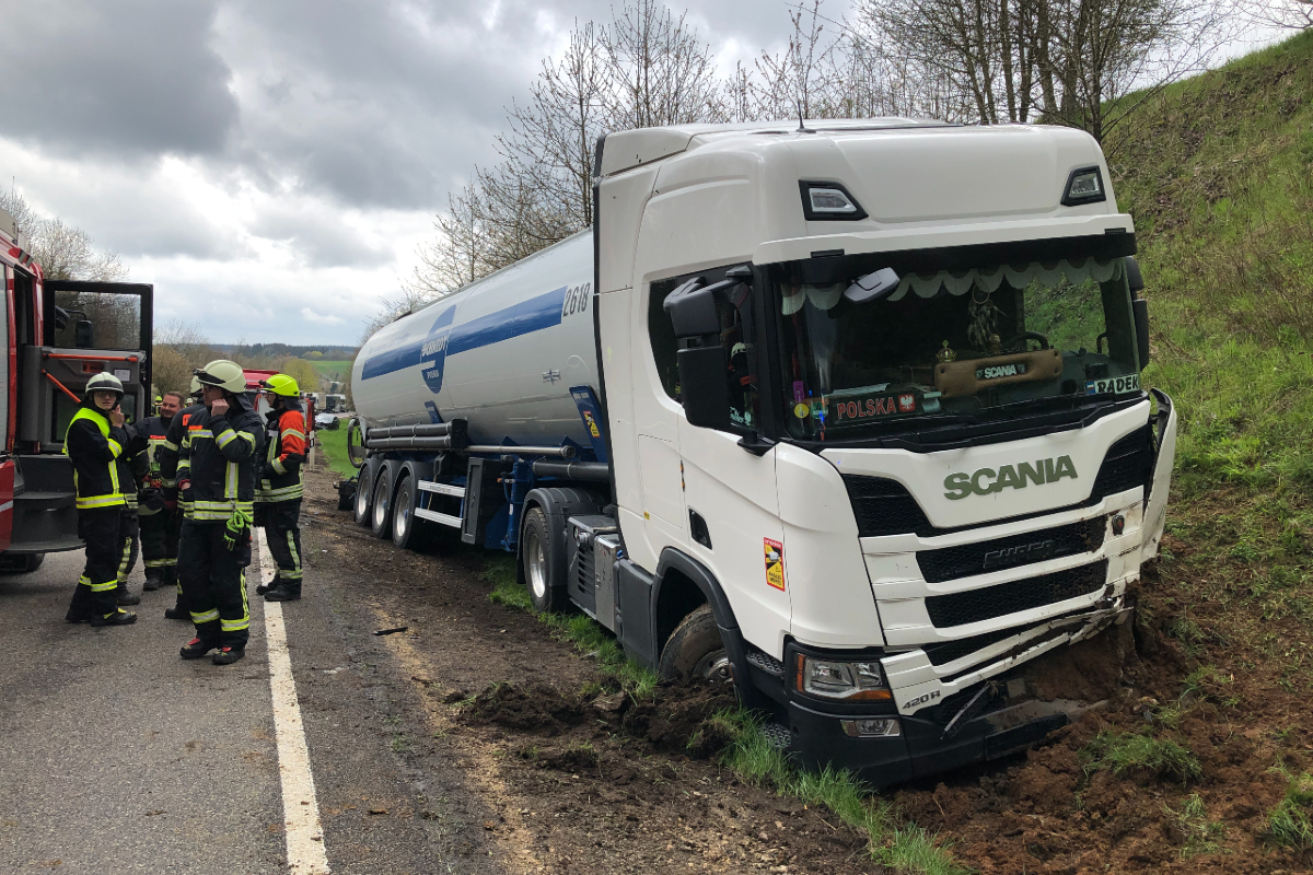 Ein Skoda, der in Richtung Autobahn unterwegs war, kam auf die Gegenspur und prallte frontal gegen einen entgegenkommenden Sattelzug. Beide Fahrzeuge waren nicht mehr fahrbereit. Der Fahrer des PKWs wurde schwer verletzt und mit einem Rettungshubschrauber ins Krankenhaus gebracht.