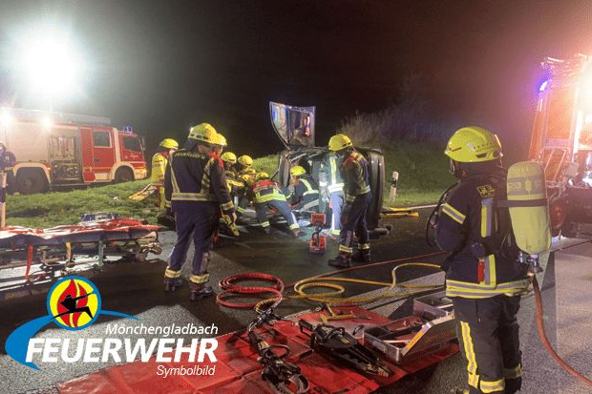 Schwerer Verkehrsunfall auf Hardter Landstraße (Bildquelle: Feuerwehr Mönchengladbach)