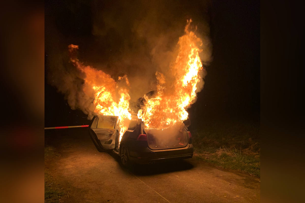Der Fahrzeuginnenraum stand zu diesem Zeitpunkt bereits in Flammen. Ein Fahrzeugführer oder andere Personen konnten von den Polizisten nicht festgestellt werden. Die Beamten alarmieren die Feuerwehr, doch bis zu deren Eintreffen hatte sich das Feuer auf den gesamten Pkw ausgebreitet.