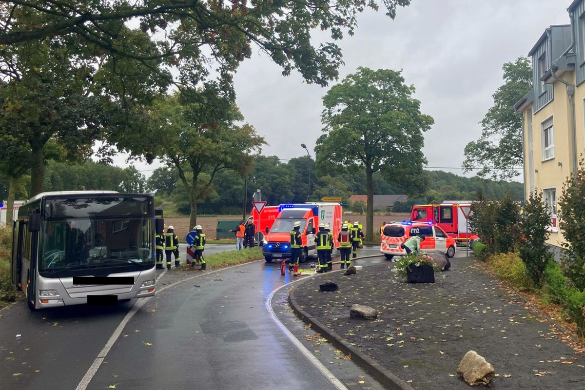 Am Dienstag, 09.09.2025, 13:53 Uhr, Einsatz 076/2025 – Zu einem Alleinunfall mit einem Schulbus musste die Feuerwehr Sonsbeck am Dienstagmittag ausrücken. I