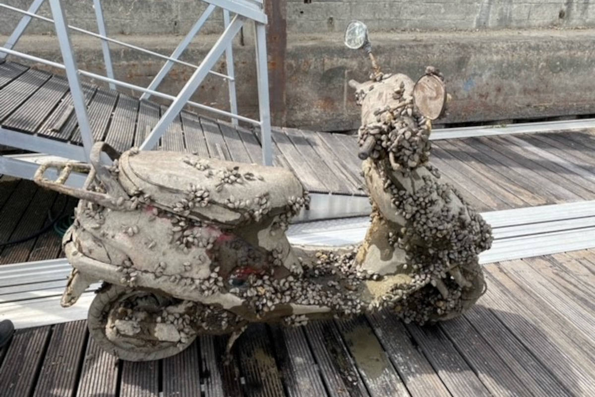 Am Donnerstag, dem 2. Juni, wurde im Rahmen einer Reinigungsaktion des Hafenbeckens mittels Tauchern, neben ca. einer halben Tonne Müll, ein Roller aufgefunden.