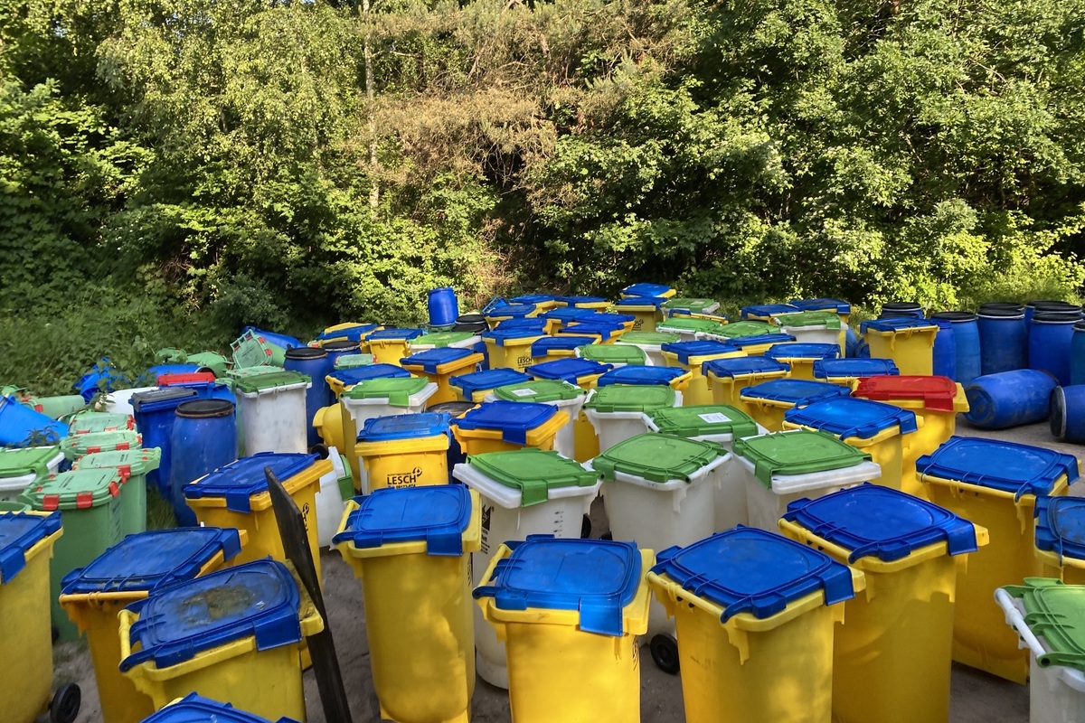 Die Polizei sucht nach Zeugen, nachdem jemand illegal ca. 130 alte Fässer und Mülltonnen entsorgt hat.