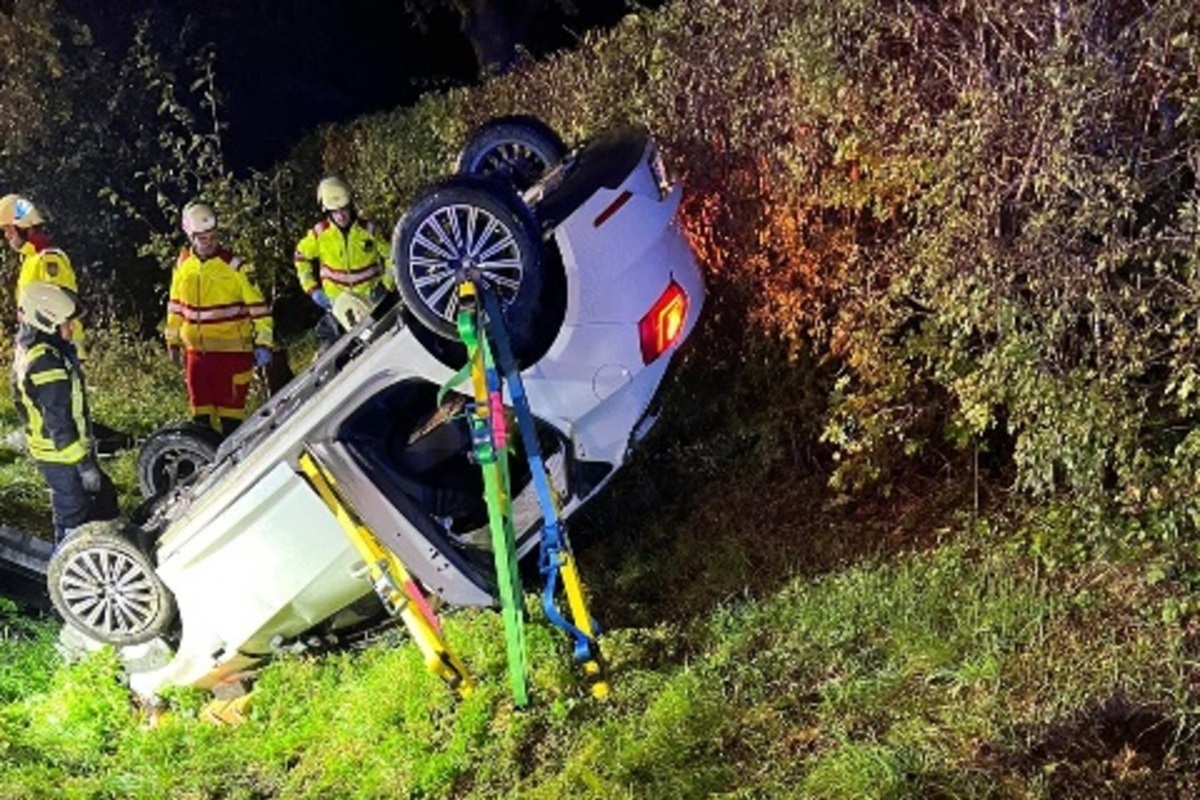 Die Feuerwehr betreute die verletzte Person im Fahrzeug, sicherte das Fahrzeug gegen Wegrutschen ab und leuchtete die Unfallstelle aus. Nach Rücksprache mit dem Notarzt wurde die Fahrertür mittels hydraulischen Rettungsgeräts entfernt. Gemeinsam mit dem Rettungsdienst wurde die verletzte Person aus dem Fahrzeug befreit.