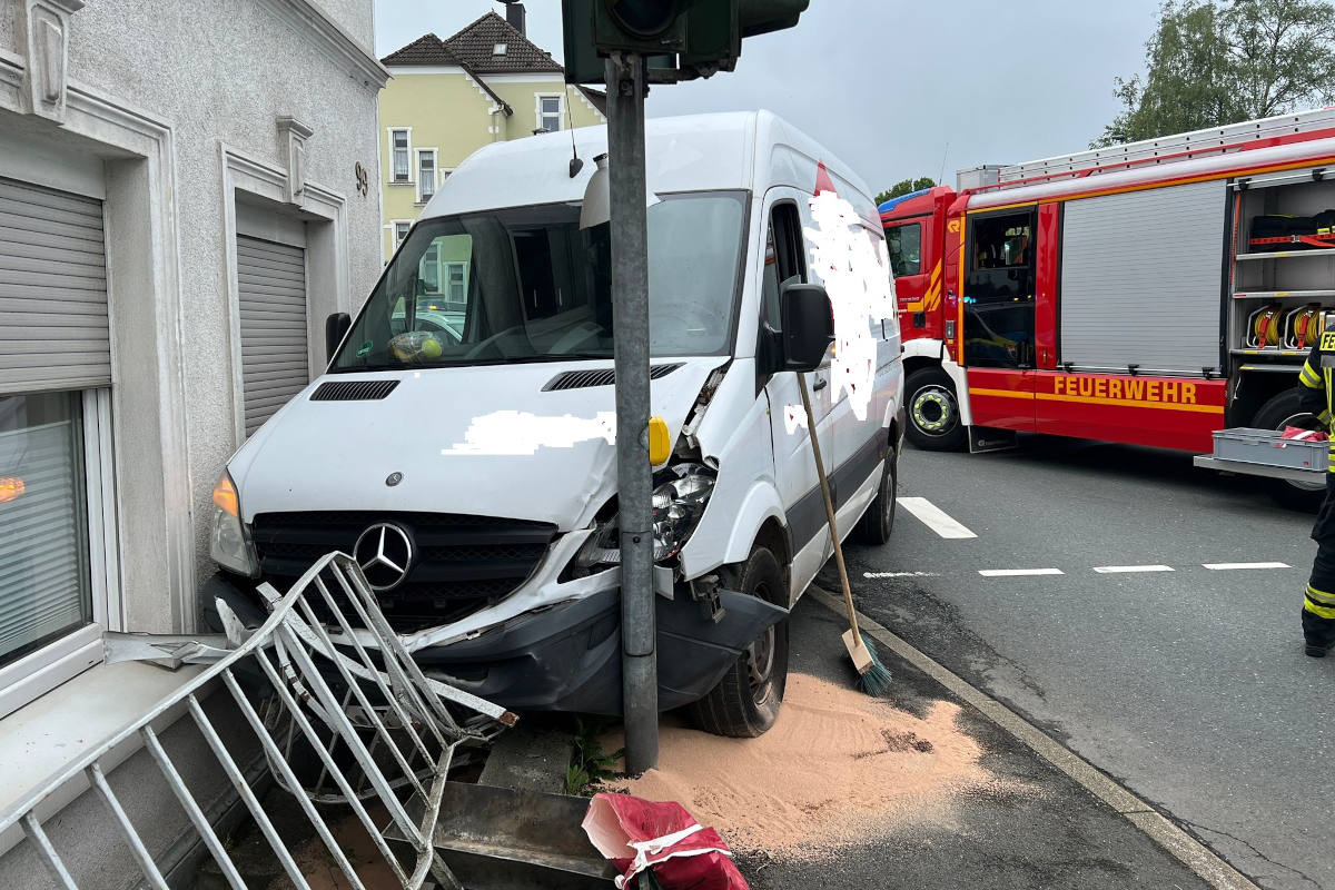 Dort hatte sich ein abgestellter Kleintransporter in Bewegung gesetzt, ist über eine Kreuzung gerollt und ist an einer Hauswand zum stehen gekommen. Die Feuerwehr sicherte die Unfallstelle ab und verhinderte ein weiterrollen des Kleintransporters. Dabei wurde auch eine Ampelanlage beschädigt. Auslaufende Betriebsmittel wurden mit Bindemitteln aufgenommen. Einsatzende war gegen 12:00 Uhr.