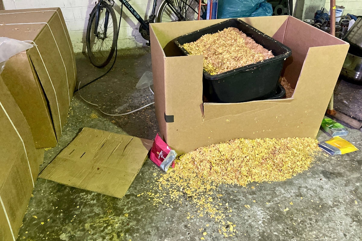 Am 05. Mai 2022 durchsuchten Kräfte des Zollfahndungsamtes Essen drei Objekte in Dortmund und Nottuln und stellten ca. 1,1 t gefälschten unversteuerten Wasser-pfeifentabak, ca. 800 kg Rauchtabak, sowie zahllose Vormaterialien, Verpackungen und Produktionsequipment, diverse elektronische Beweismittel und eine kleinere Menge Marihuana sicher.