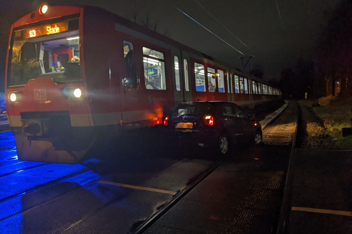 Dem 56-jährigen Treibwagenführer einer aus Fahrtrichtung Hamburg heranfahrende S-Bahn gelang es nicht mehr rechtzeitig zu stoppen und der Zug kollidierte leicht mit dem Toyota.