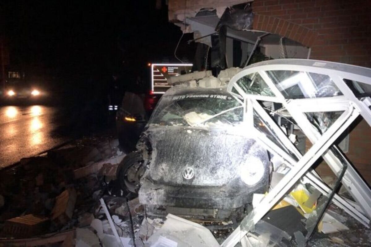 Ein 28-jähriger Autofahrer war hier zu der Zeit mit seinem VW-Beetle auf der Landesstraße 111 unterwegs, hatte dann nach Zeugenaussagen vermutlich aufgrund nicht angepasster Geschwindigkeit in der Kurve die Kontrolle über sein Fahrzeug verloren, war nach links von der Straße abgekommen und in die Geschäftsräume eines dortigen Immobilienbüros geprallt.