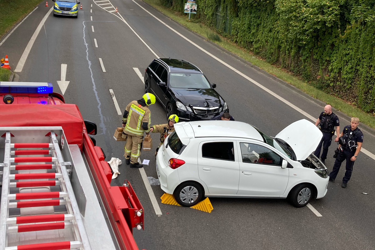 Bei einem Abbiegeunfall in Stolberg sind am Donnerstagmittag zwei Männer verletzt worden, einer davon schwer. Ein 32-jähriger Autofahrer übersah beim Abbiegen ein vorfahrtsberechtigtes Fahrzeug. Auch sein zweijähriger Sohn war im Auto, blieb jedoch unverletzt.
