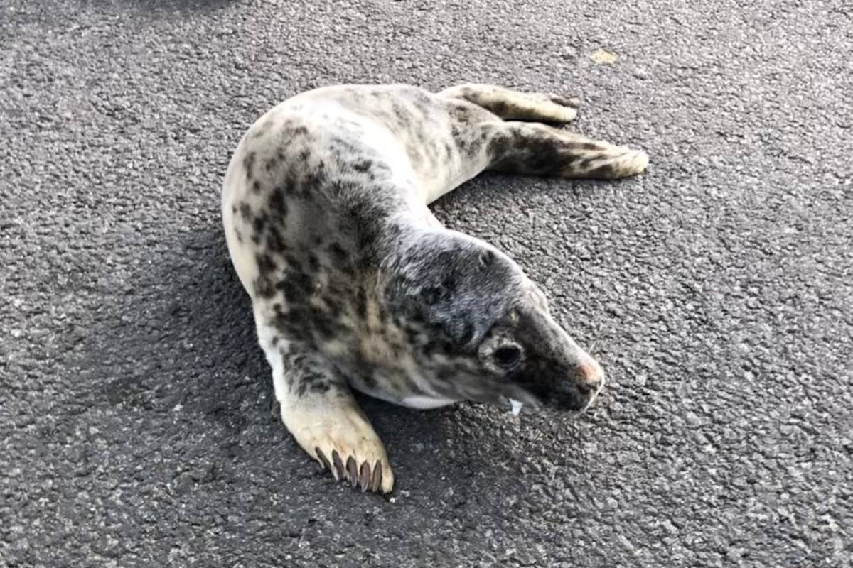 Die geschwächte junge Kegelrobbe wurde dann durch die Beamten in Nähe der alten Flugzeugwerft auf der Fahrbahn festgestellt. In Abstimmung mit dem Veterinäramt wurde das ziemlich neugierige Tier durch eine Tierärztin eines großen Stralsunder Museums in Obhut genommen und dort hoffentlich schnell wieder aufgepäppelt.