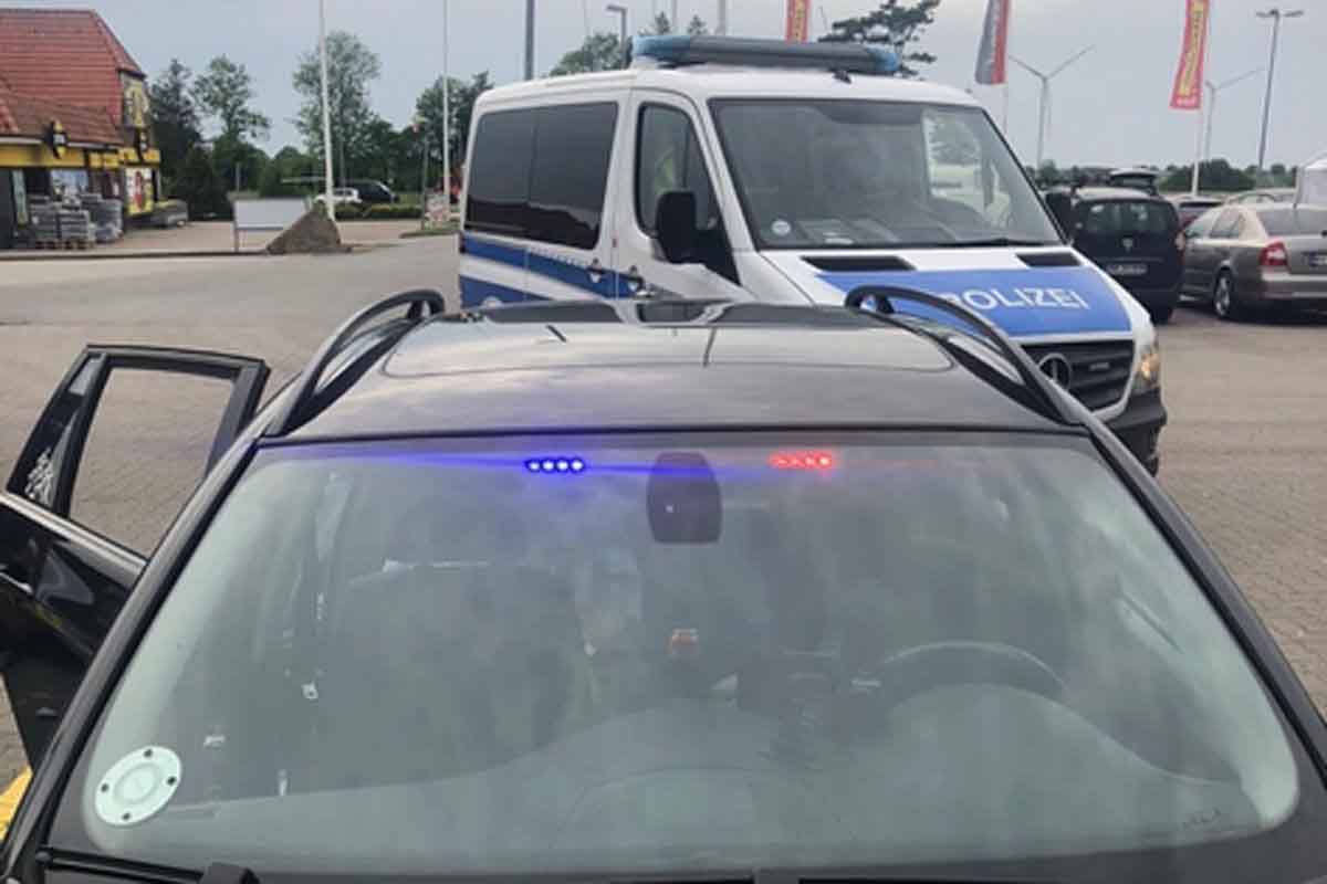 Samstagnachmittag erhielt die Leitstelle der Bundespolizei einen Hinweis, dass sich ein ziviles Auto auf der Grenzstrasse befinden soll und mit eingeschaltetem Blaulicht andere Autofahrer dadurch verunsicherte. Eine "echte" Streife, die im besagten Bereich unterwegs war, konnte das Fahrzeug auf einem Parkplatz in Süderlügum feststellen. Es handelte sich um einen schwarzen BMW, die Insassen waren nicht anwesend.