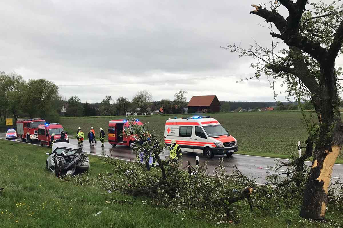 In Tafertsweiler drehte sich der Pkw und prallte mit der linken Fahrzeugseite gegen einen Baum (Bildquelle: Freiwillige Feuerwehr Ostrach)