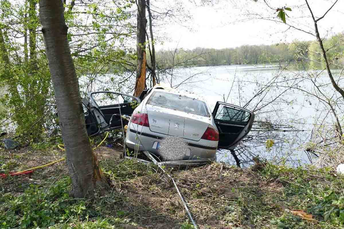 Wasserrand des Baggersees und dem folgenden, nach unten steil abfallenden Kiesgrund gestoppt, sodass ein Versinken des Fahrzeuges im Baggersee verhindert wurde.