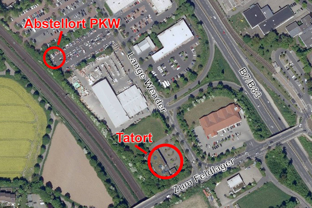 - Wer hat am Freitagmorgen, 25.06.2021, oder bereits am Mittwochmorgen, 23.06.2021, verdächtige Personen oder Fahrzeuge im Bereich des Tatorts oder des Parkplatzes neben dem Baustoffmarkt beobachtet?