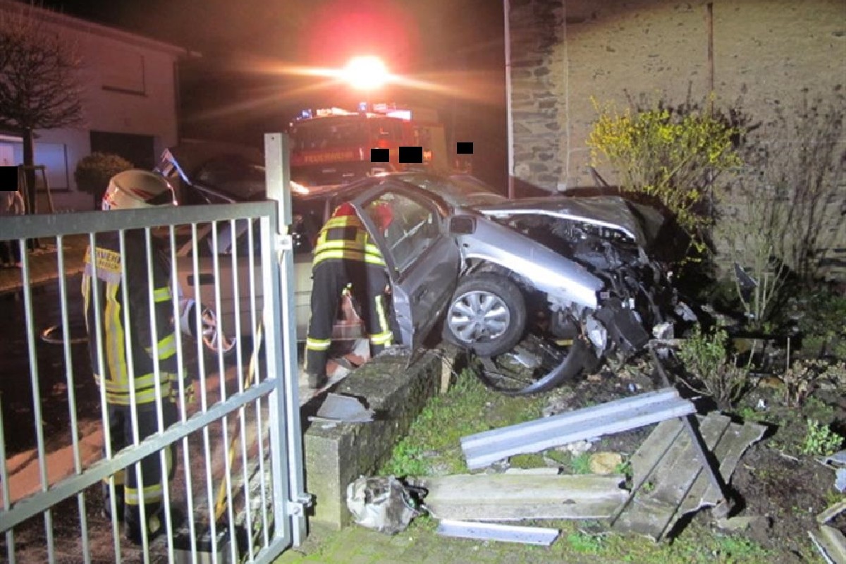 Am 06.03.20 um 00:08 Uhr flüchtet ein mit zwei Personen besetzter PKW in Traben-Trarbach beim Erblicken des Streifenwagens am Busbahnhof und kollidiert nach ca. 400 Metern an der Einmündung Laugasse mit der Betonmauer des dortigen Anwesens.