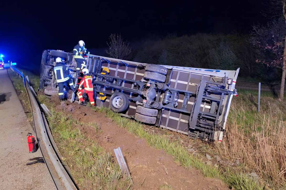 Triebsees - Unfall auf der A20 - LKW überschlagt sich