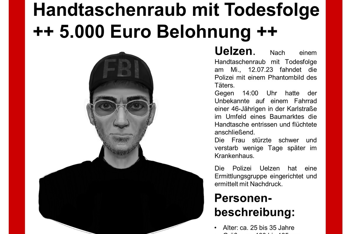 Parallel setzt die Staatsanwaltschaft Lüneburg jetzt für Hinweise, die im konkreten Fall des Handtaschenraubs zur rechtskräftigen Verurteilung des Täters führen, eine Belohnung von 5.000,- (fünftausend) Euro aus.