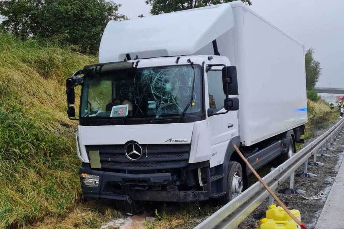 Ein Lkw-Fahrer kam gestern, 23.06.2023, von der Fahrbahn ab und überfuhr 40 Meter einer Leitplanke. Durch den Unfall kam es zu Verkehrsbehinderungen.