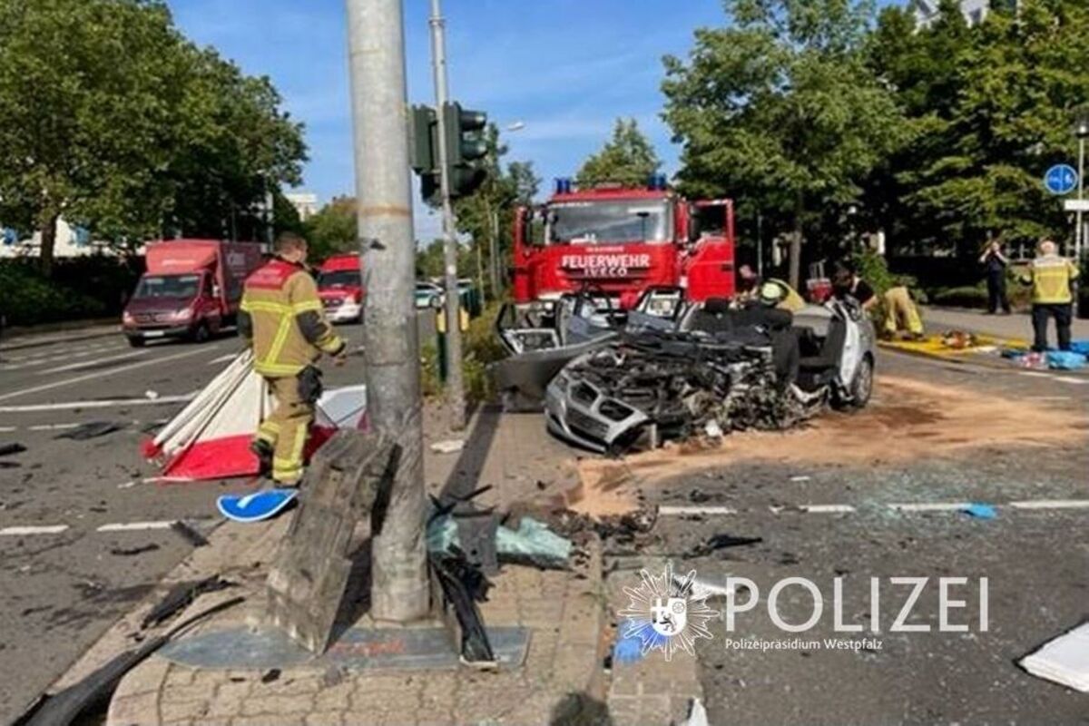 Unfall in Kaiserslautern RP - Mit einer Laterne kollidiert