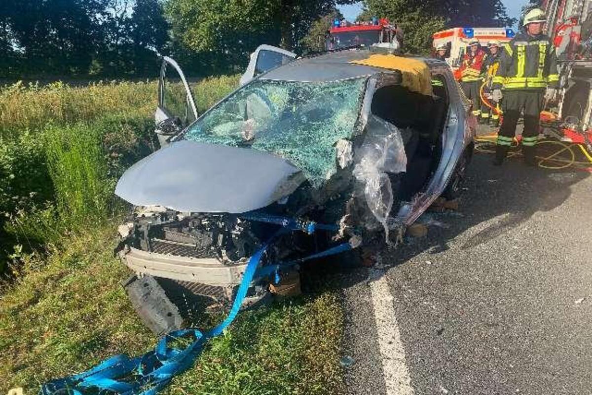 Der Fahrer wurde im Auto eingeklemmt und musste von den eingesetzten Feuerwehren aus Sauensiek und Apensen mit schweren Rettungsgerät befreit werden.