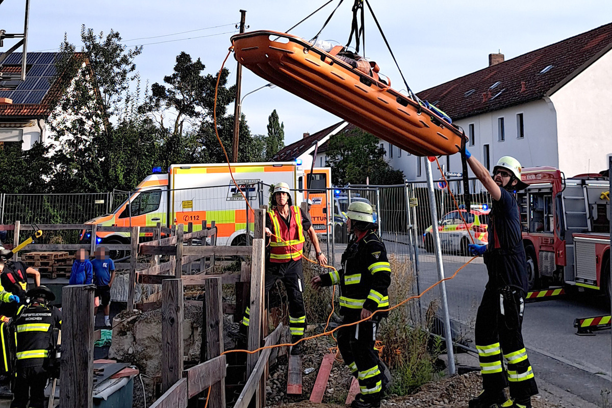 Der etwa 45-jährige Mann stürzte aus dem zweiten Stockwerk eines Gebäudes mehrere Meter tief in eine Baugrube und rutschte in einen Spalt zwischen dort angebrachten Spundwänden und einer Mauer. Dabei zog er sich lebensbedrohliche Verletzungen zu. Seine Arbeitskollegen setzten sofort einen Notruf ab.