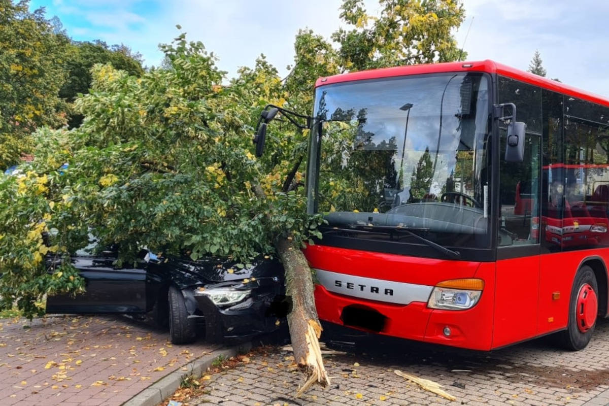 Ein 48-jähriger Mann aus Uslar war zunächst mit seinem PKW auf einem dortigen Parkplatz rückwärts in einen anderen dort abgestellten PKW gefahren und hatte diesen dabei stark beschädigt. Anschließend fuhr er mit starker Beschleunigung vom Parkplatz über den Gehweg und querte die Straße "Zur Schwarzen Erde". Seine Fahrt endete, als er frontal gegen einen dortigen Straßenbaum prallte. Der Baum stürzte auf den PKW. Ein auf dem ZOB geparkten Linienbus wurde dabei ebenfalls beschädigt.