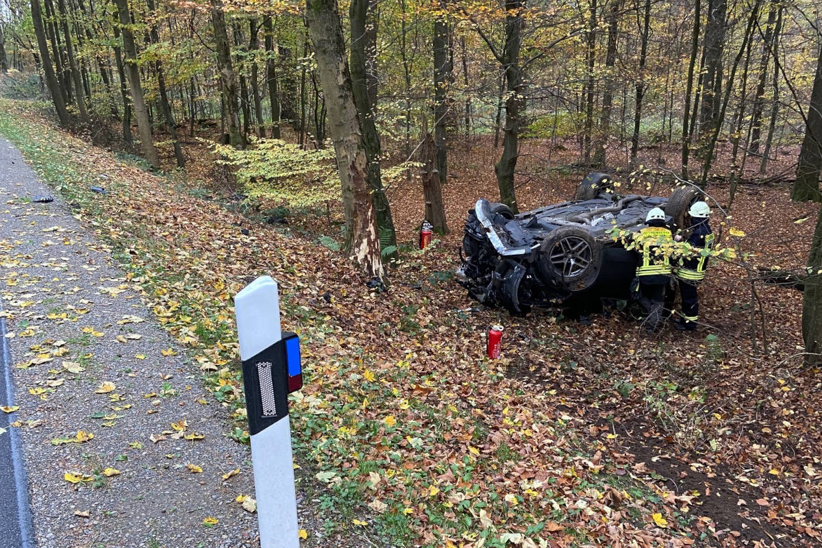Beim Durchfahren einer Linkskurve verlor er die Kontrolle über seinen PKW Mercedes und kam nach rechts von der Fahrbahn ab. Dabei prallte das Fahrzeug zunächst gegen einen Straßenbaum, überschlug sich und kam im Straßengraben auf dem Fahrzeugdach zum Liegen. Der leicht verletzte Fahrer konnte sich selbst aus dem Fahrzeug befreien und wurde zur Behandlung in ein umliegendes Krankenhaus gebracht.