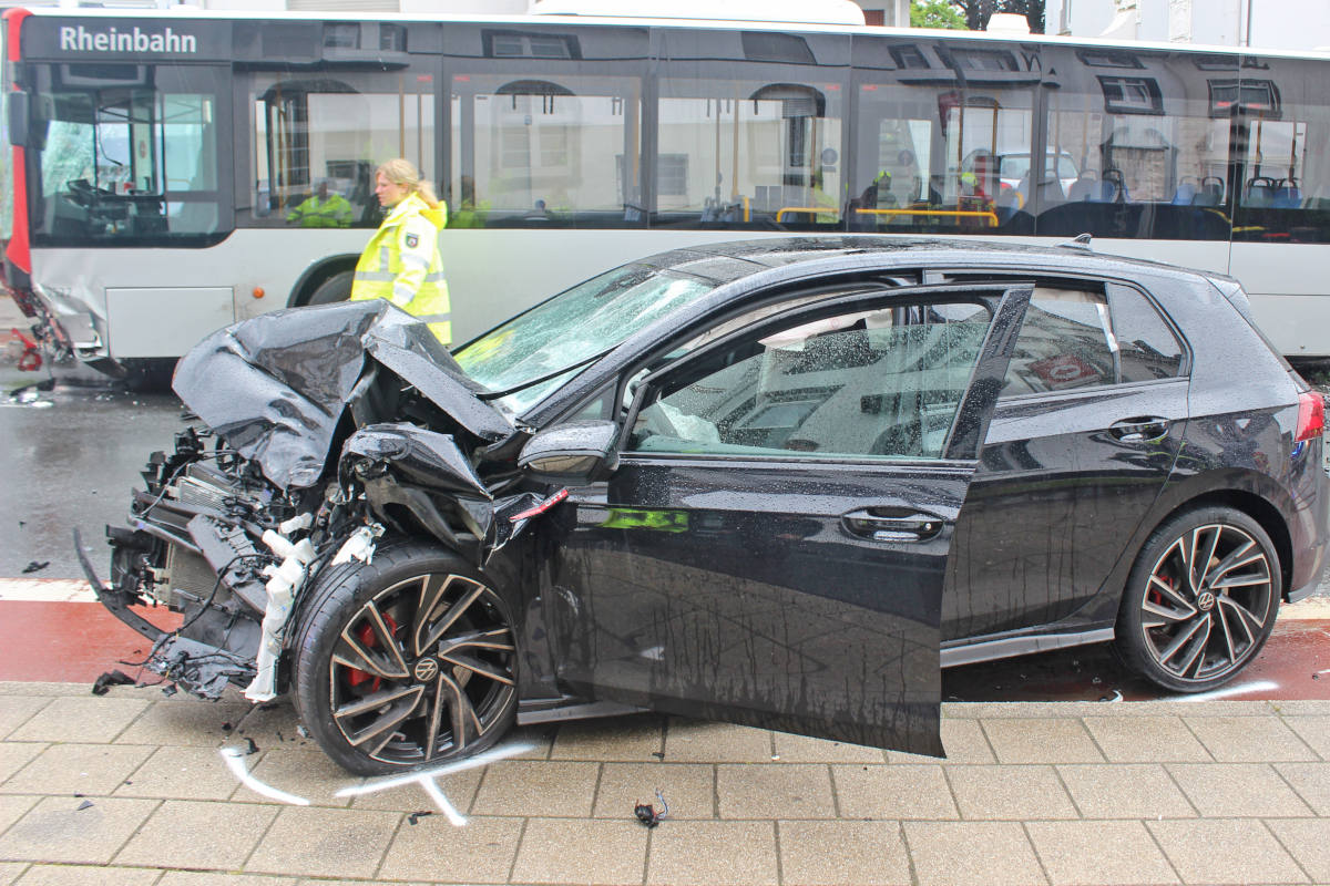 Bei der schweren Kollision wurde der 20-jährige GTI-Fahrer schwer verletzt. Die Feuerwehr musste ihn aus dem Fahrzeug befreien und mit notärztlicher Betreuung einer Klinik zuführen, wo der Patient zur intensivmedizinischen Behandlung verblieb. Der 51-jährige Busfahrer erlitt nur leichtere Verletzungen und wollte sich deshalb später eigenständig in ärztliche Behandlung begeben.