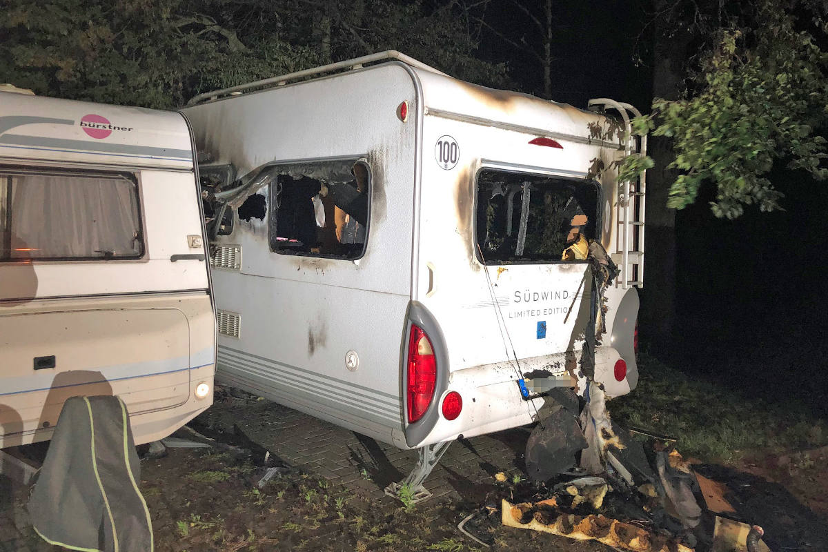 Wohnwagen gleich zweimal in Brand gesetzt in Velbert (Bildquelle: Polizei Mettmann)