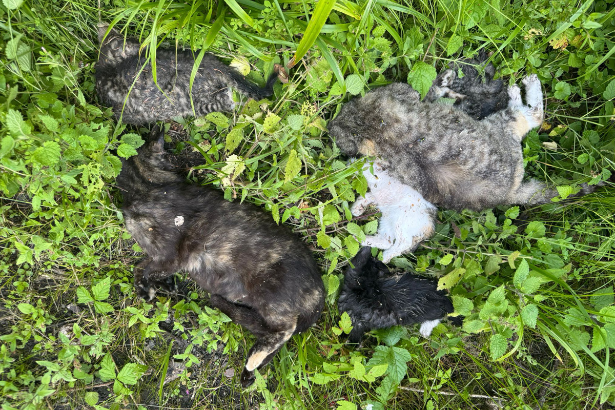 Unweit der Straße, welche Velgast mit der Ortslage Hövet verbindet, fand sie mehrere Katzenkadaver – zwei ausgewachsene Tiere und vier Jungtiere.