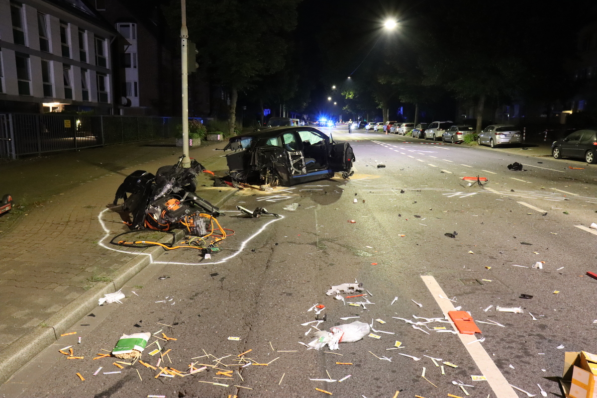 Nach den bisherigen Ermittlungen war der Mann zur Unfallzeit mit seinem BMW auf der Vennhauser Allee in Richtung Vennhausen unterwegs. Aus bislang unklarer Ursache verlor er die Kontrolle über sein Fahrzeug und kam nach rechts von der Fahrbahn ab. In der Folge kollidierte er mit einem Baum, vier Pollern, mindestens zwei Pkw und einem Fahrrad. Der Pkw überschlug sich mehrfach und kam entgegengesetzt zur Fahrtrichtung auf der gegenüberliegenden Straßenseite auf den Rädern zum Stehen. Es entstand ein riesiges Trümmerfeld. Die Feuerwehr war vor Ort, versorgte den Mann und brachte ihn zur stationären Behandlung in ein Krankenhaus.