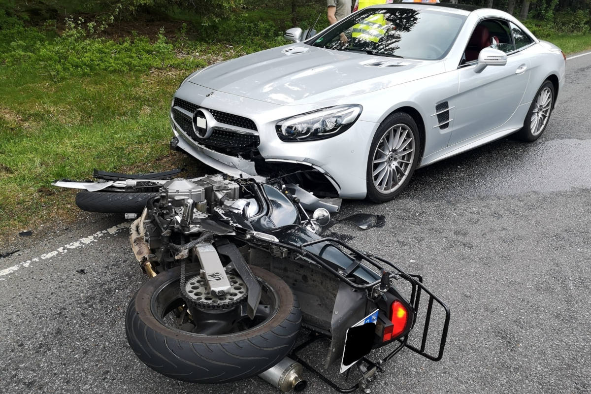 Am Samstag kam es, zwischen Kreuzeck und Bockswiese, zu einem Unfall zwischen einem PKW und einem Motorrad.