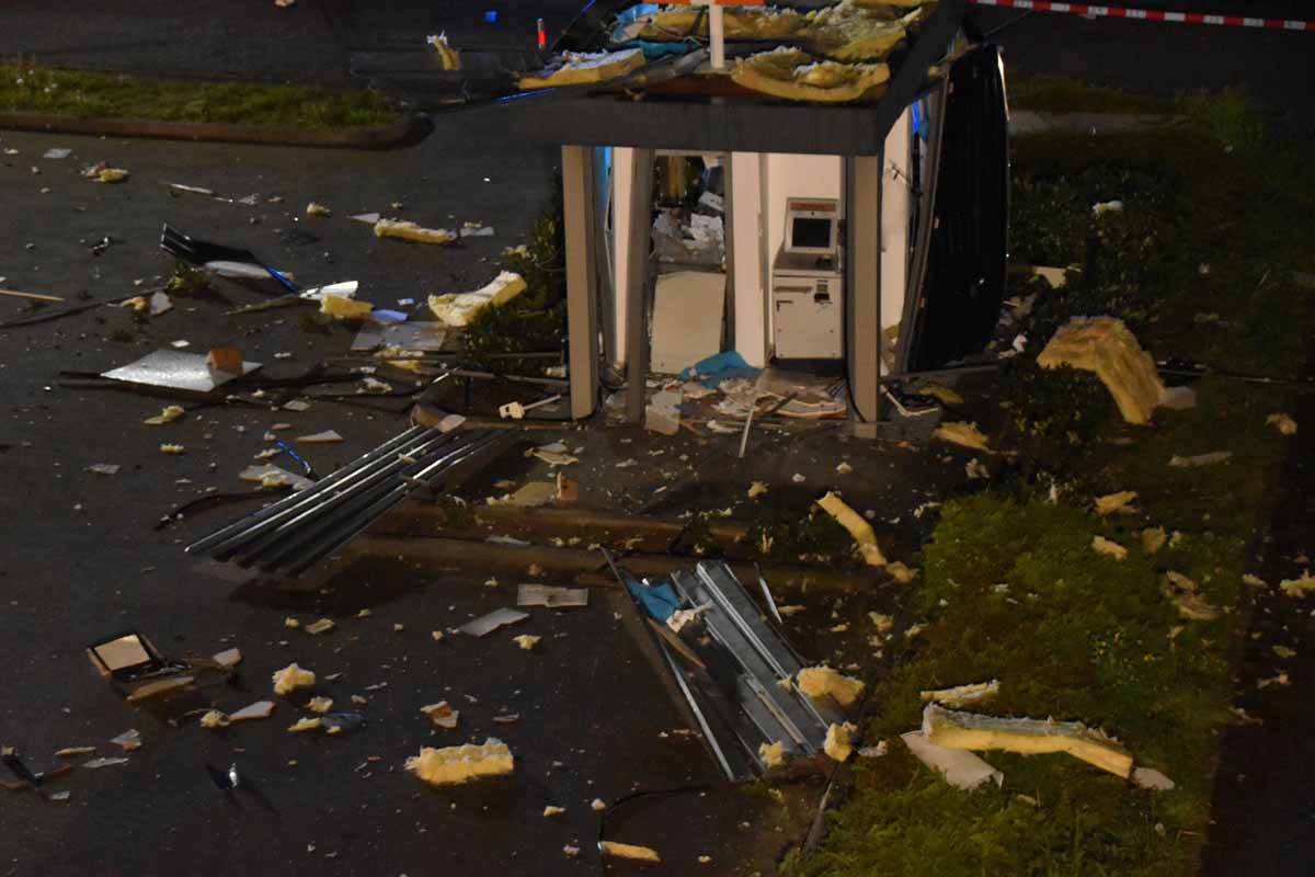 In der Nacht zum Dienstag, 11.05.2021, wurde die Polizei um kurz nach 03.00 Uhr durch Zeugen über Explosionsgeräusche informiert, so dass die Tatzeit entsprechend einzugrenzen ist.