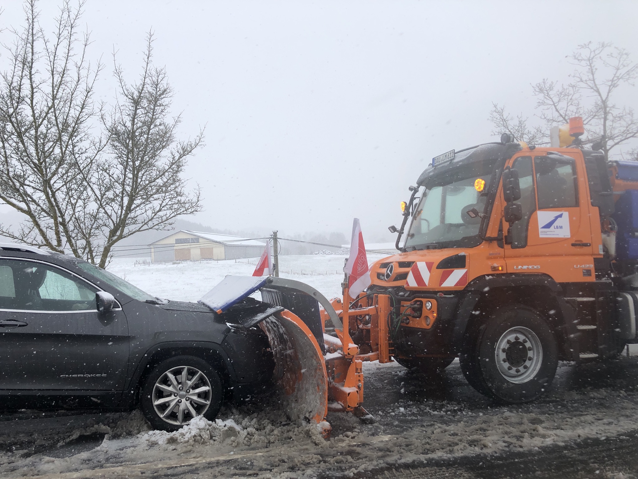 Es war der geringen Geschwindigkeit des Räumfahrzeuges und der guten und sofortigen Reaktion des Räumfahrzeugfahrers zu verdanken, dass es nicht zu einem schwerwiegenden Unfall kam.