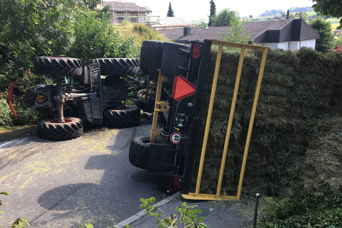 Eine junge Erwachsene verlor die Kontrolle über den Trecker und kippte mit ihm um. Ein 5-jähriger Junge wurde dabei aus dem Fahrzeug geschleudert und eingeklemmt.