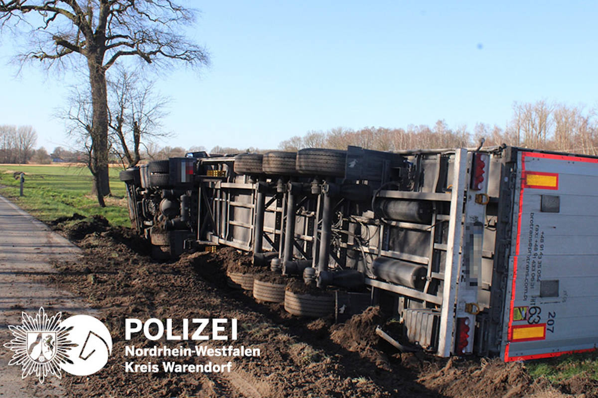 Lange Straßensperrung nach LKW-Unfall bei Warendorf (Bildquelle: Polizei Warendorf)