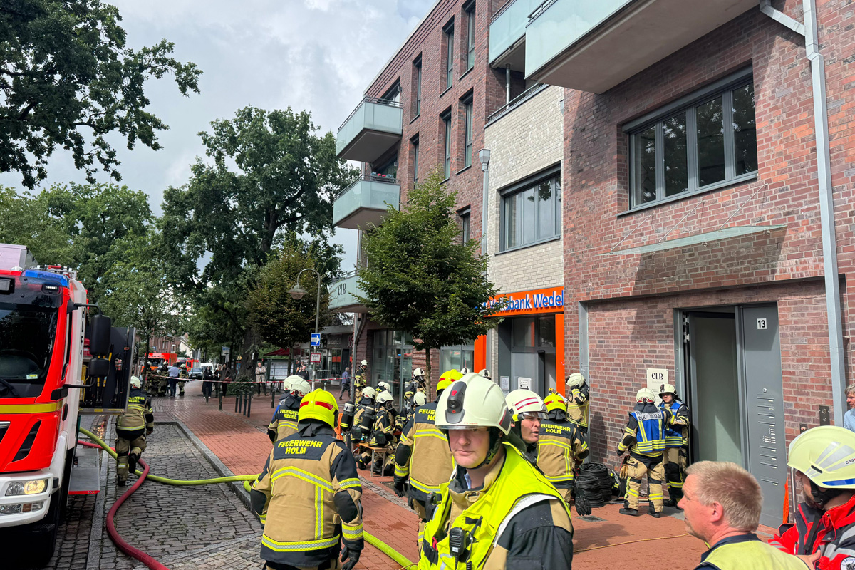 Die Feuerwehr Wedel war um 14.33 Uhr alarmiert worden. Einem Mitarbeiter der in dem Gebäude ebenfalls beheimateten Bank hatte den Brandgeruch und die Rauchentwicklung bemerkt und den Notruf abgesetzt.
