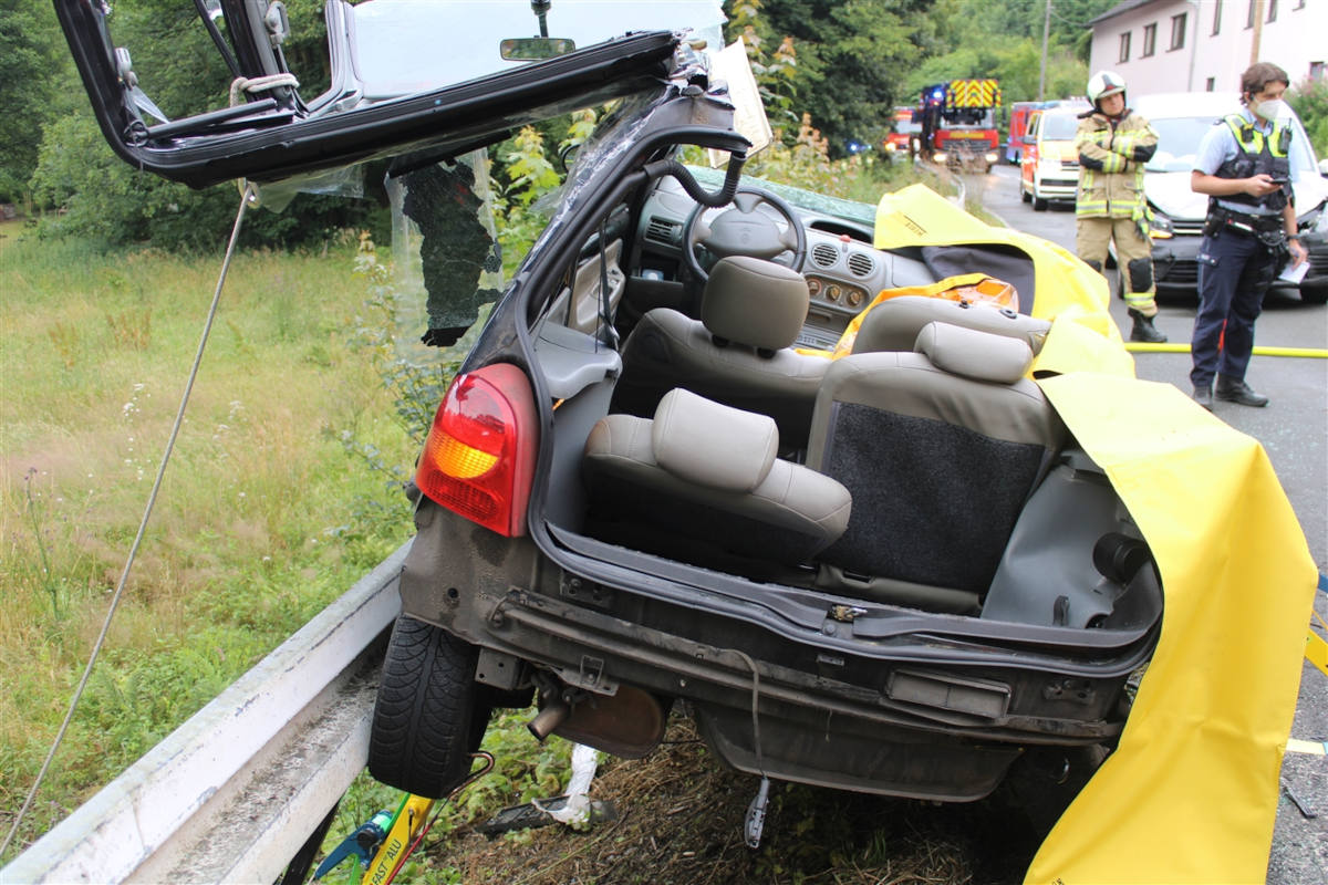 Düsseldorferin kollidiert mit Gegenverkehr und landet auf Leitplanke in Wermelskirchen (Bildquelle: Polizei Rheinisch-Bergischer Kreis)