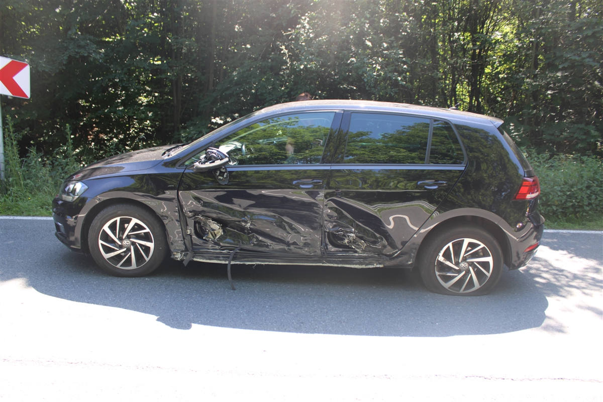 Ein 26-jähriger Remscheider befuhr am Donnerstagnachmittag (23.06.) gegen 14:30 Uhr mit seinem VW Golf mit geöffneter Seitenscheibe die Remscheider Straße in Fahrtrichtung Remscheid. Plötzlich spürte er nach eigener Aussage einen Stoß und Schmerz an seiner Stirn, wodurch er in den Gegenverkehr geriet und mit dem entgegenkommenden VW Golf einer 57-jährigen Wermelskirchenerin kollidierte.