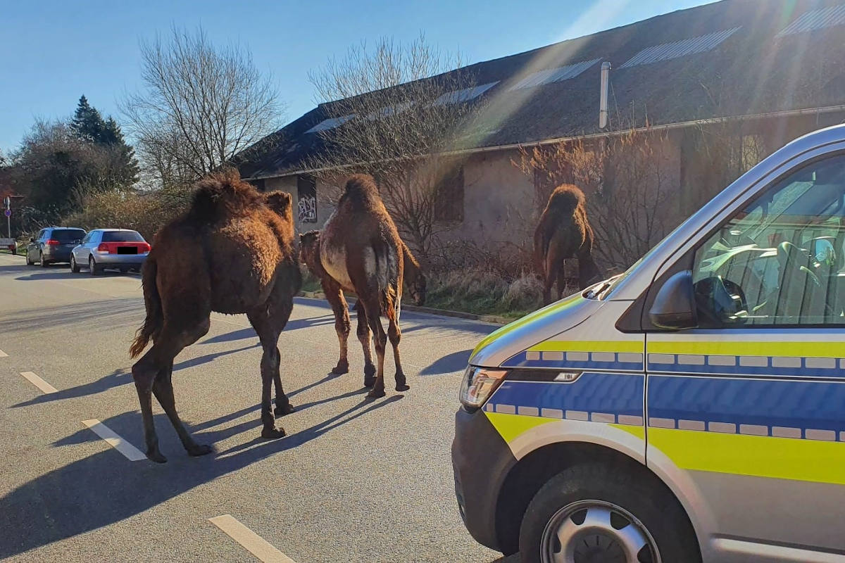 Am heutigen Vormittag sorgten vier ausgebüxte Dromedare für einen kurzzeitigen Polizeieinsatz im Stadtsüden.