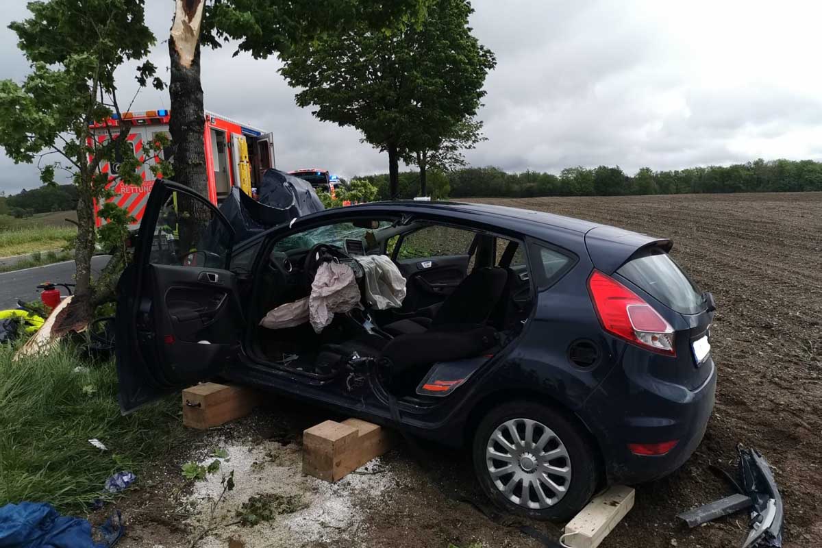 Vor Ort bestätigte sich die Lage. Ein Auto war heute von der Straße abgekommen und gegen einen Baum geprallt.